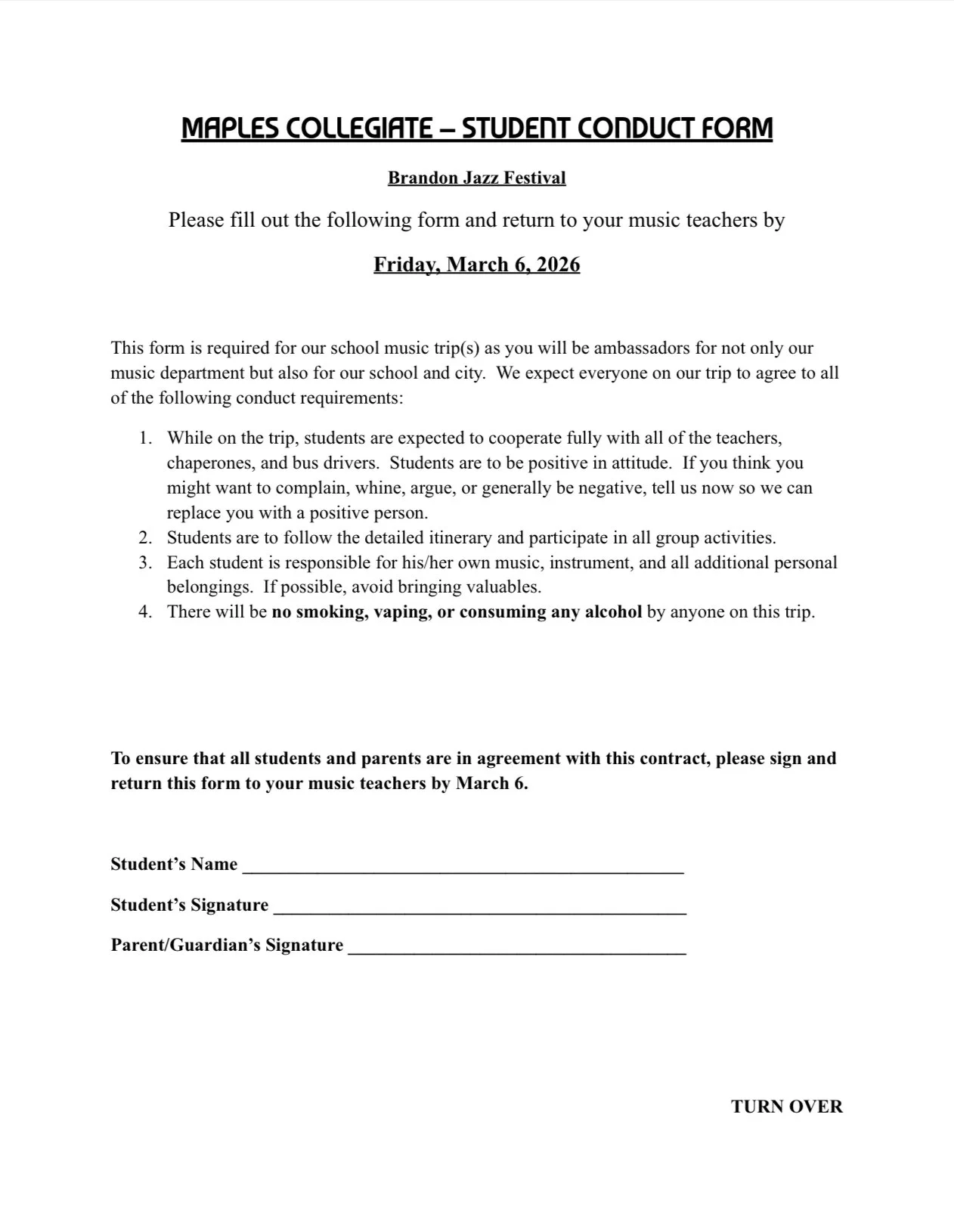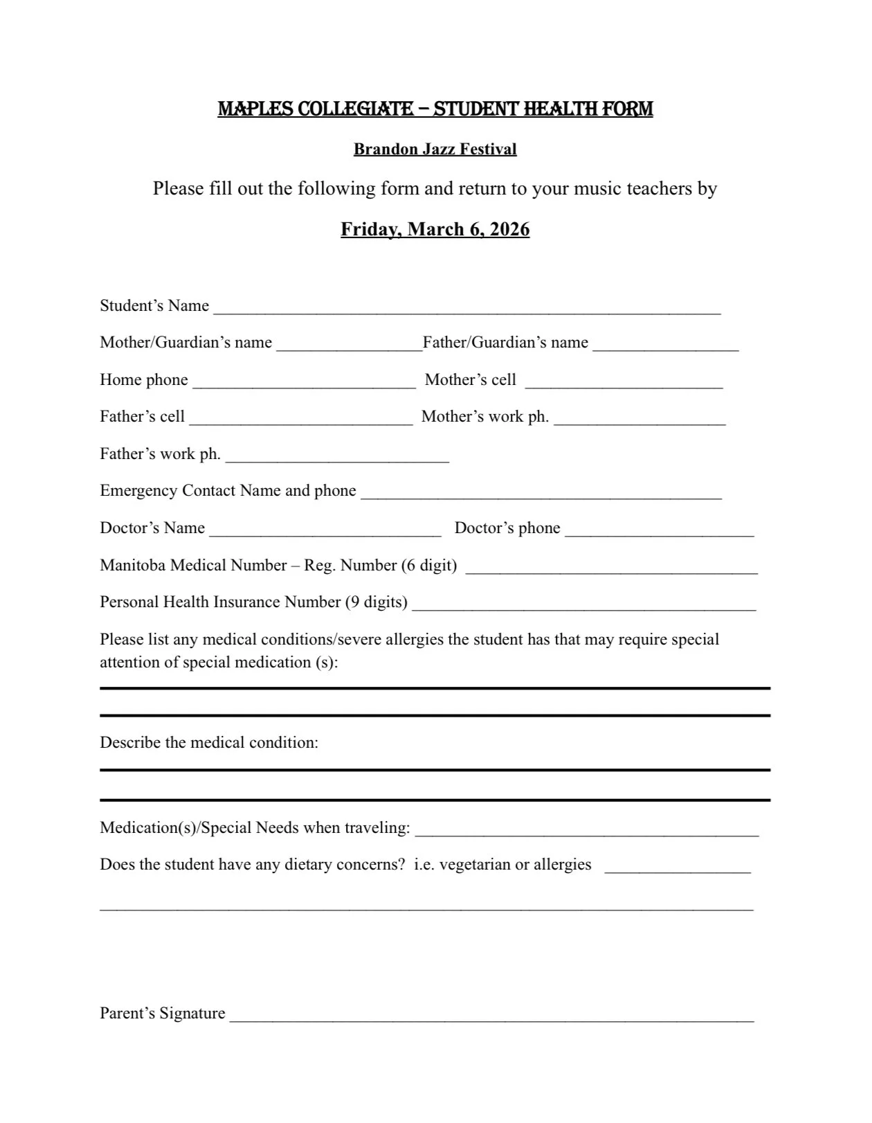 These are important forms for students and guardians to sign when we go on trips such as the Brandon University Jazz Festival or our bi-annual senior trip.